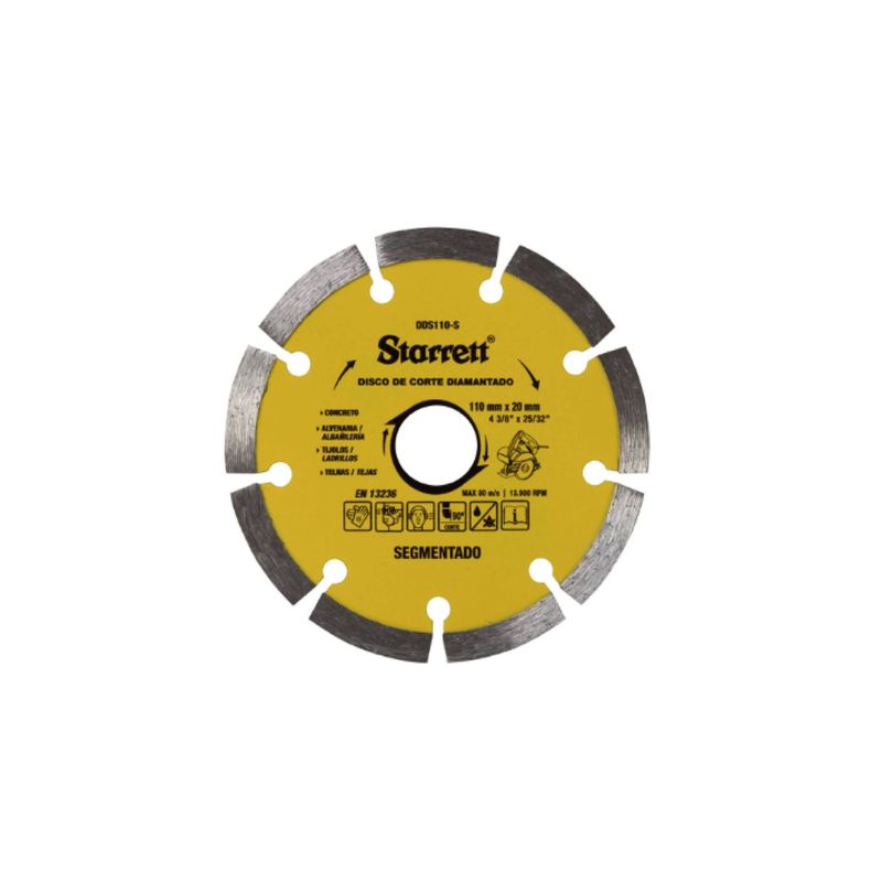 • Conteúdo da Embalagem: 1 Disco de Corte Diamantado Segmentado 110x20mm Starrett