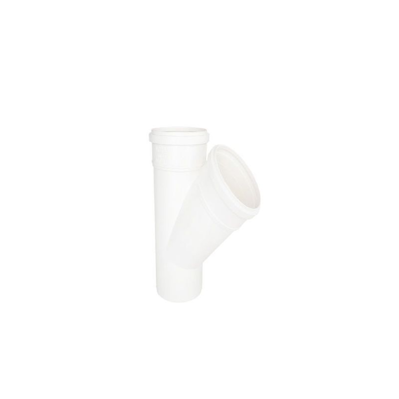 - Ângulo de 45°: Permite a mudança de direção nas tubulações de forma eficiente, ideal para ajustes de percurso em sistemas de esgoto e drenagem.